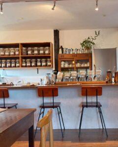 焙煎機の音が心地よく響く、木の温もり溢れる店内。