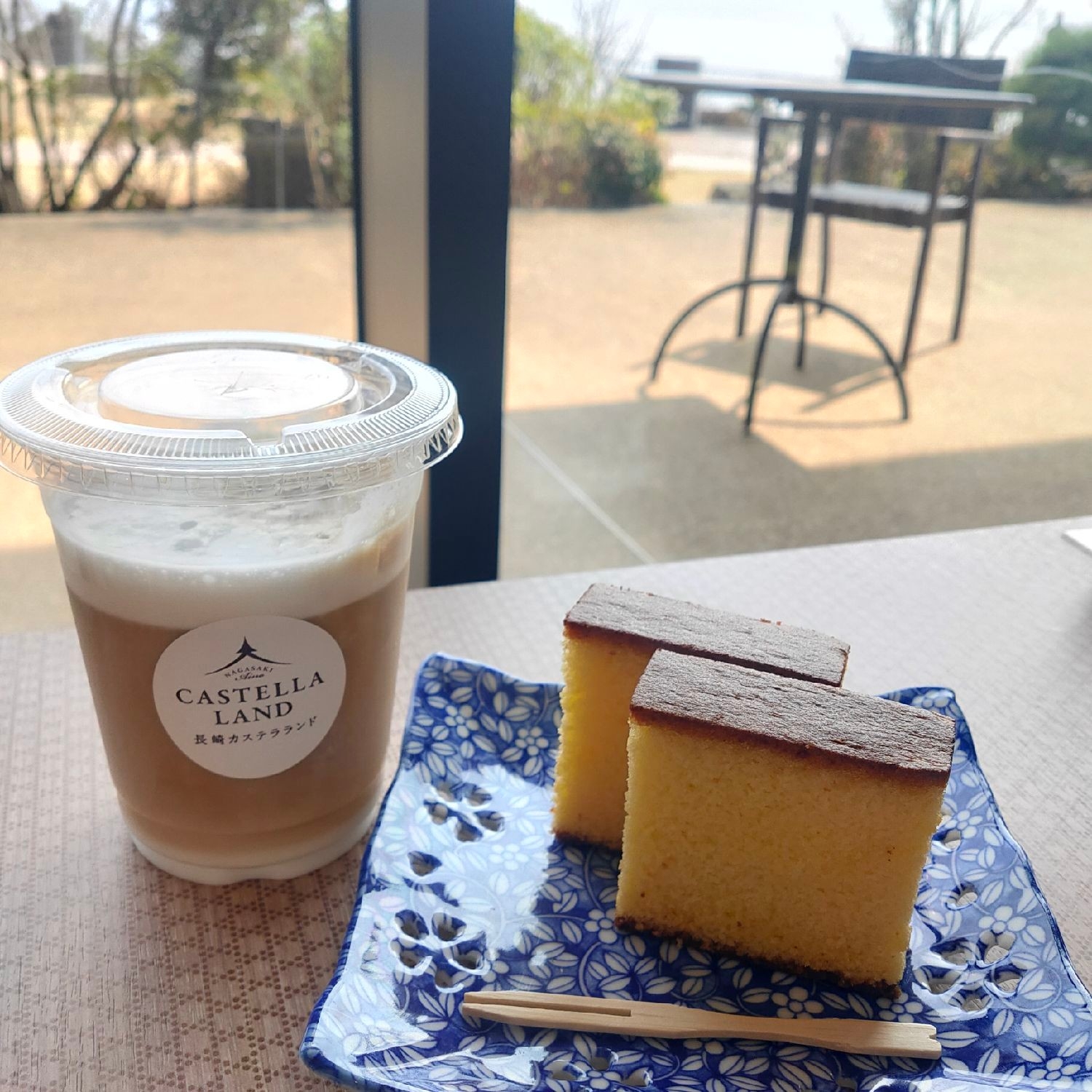 絶景を眺めながら味わう、長崎名物カステラとカフェラテのセット