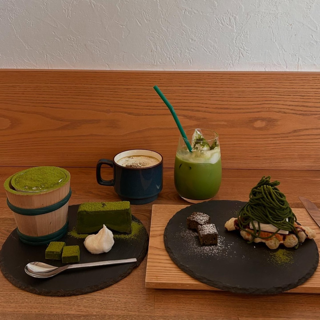 お茶の名産地として知られる福岡県八女市に店を構える「茶匠むろぞの 和cafe」は、自家栽培・自家工場で丹精込めて作り上げる深蒸し八女茶の魅力を、現代の感性で表現した和スイーツとして提供しています。素材へのこだわりが強く、特に八女茶を使用したスイーツは、その色鮮やかな緑と濃厚な風味で訪れる人々を魅了しています。画像にあるように、抹茶をふんだんに使用したかき氷やテリーヌ、生チョコなど、一つひとつ丁寧に作り上げられたメニューは、八女茶本来の持つ奥深い旨味と渋みを最大限に引き出し、甘さとの絶妙なバランスを実現しています。落ち着いた雰囲気の店内で、ゆったりとした時間の流れを感じながら、八女の豊かな自然が育んだ上質なお茶とスイーツを味わうことができる、福岡県八女市で人気を集める特別な和カフェです。見た目にも美しい升に入った抹茶ティラミスは、まるで宝箱のような一品で、お茶好きにはたまらない体験を提供してくれます。