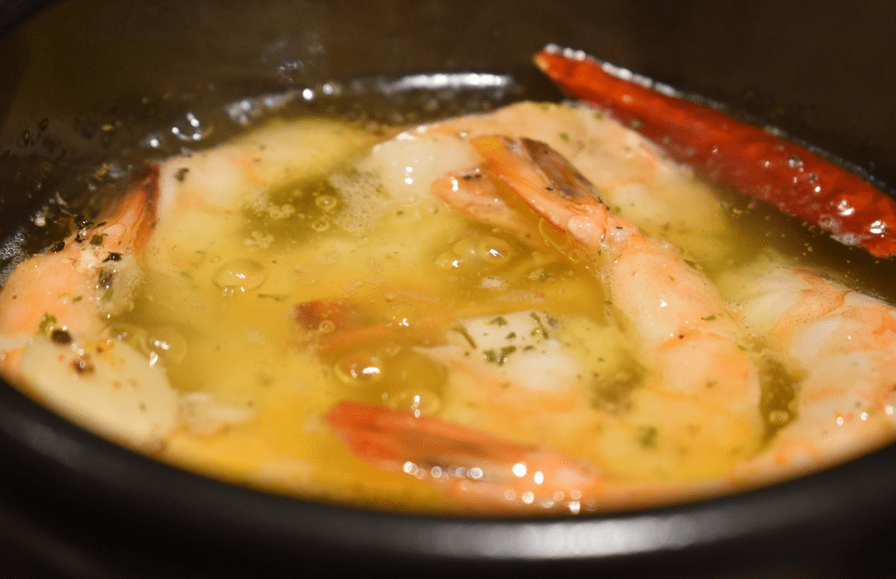プリプリの海老が躍る熱々のアヒージョは、香りまでご馳走です。
