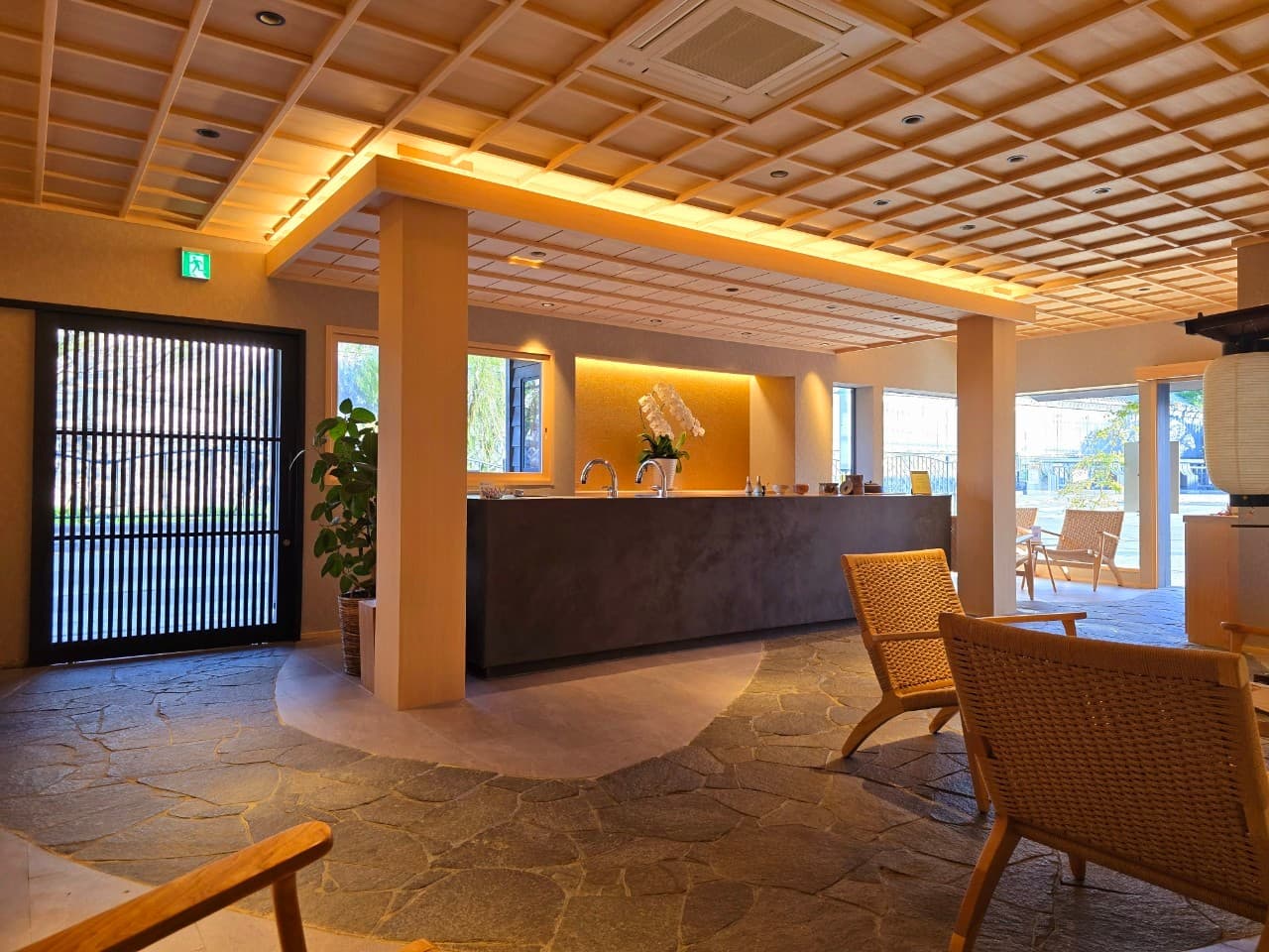 木の温もりと洗練されたデザインが融合した、開放的な店内。