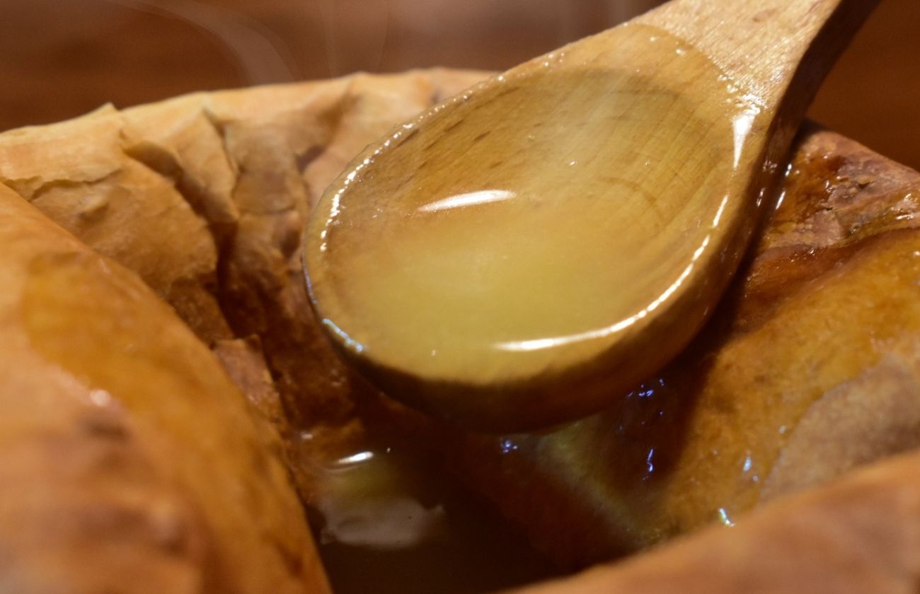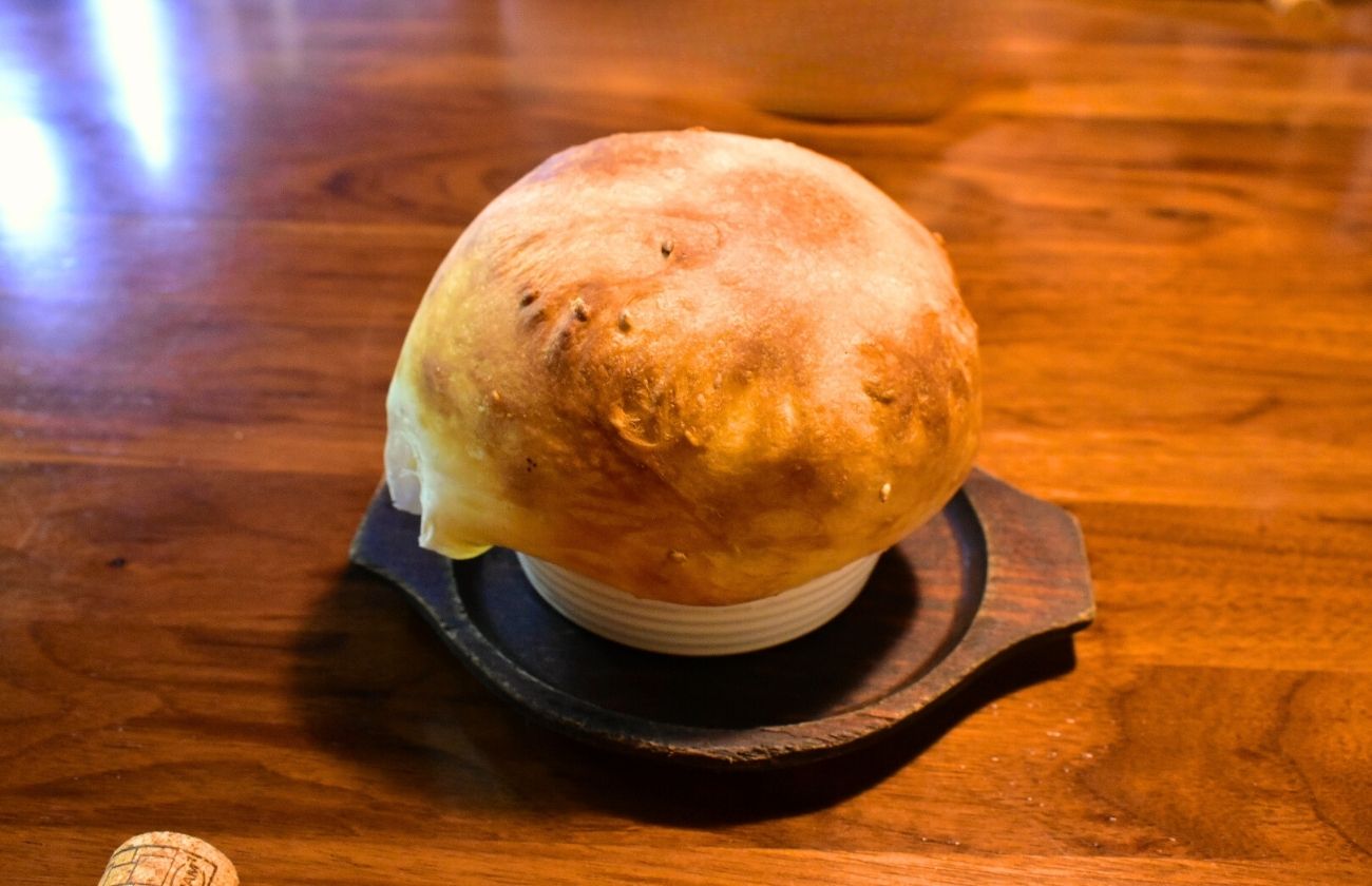 サクサクのパイ生地を崩して楽しむ、熱々の絶品ポタージュ。