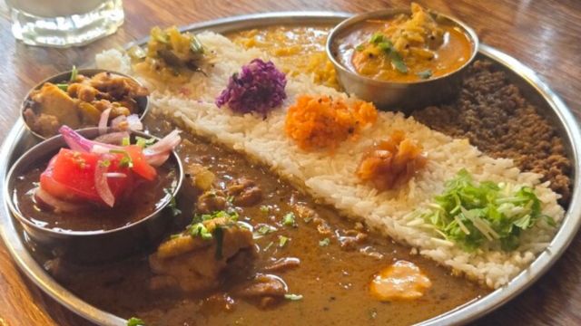 複雑なスパイスの香りが立ち上る、芸術的なカレープレート。